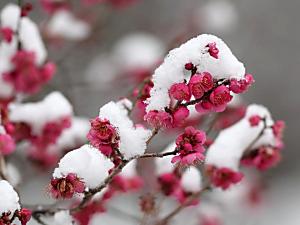 春の雪 ふんわりしていますが、いわゆる“べた雪”。 思いがけもせずに積もったりすることもあり ますが、すぐに溶けてしまいます。 傍題=淡雪、春雪 |