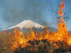 | 姉川の合戦跡の畦火かな 草津 竹内恵子 人影の消えては現るる野火煙 高知 掛川敬子 放水に虹色混じり野焼果つ 北九州 外村勢佳 |