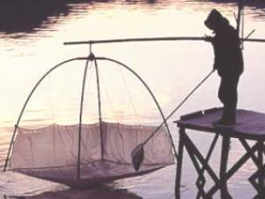 白 魚 白魚を獲る“四つ手網”の漁です。 どれぐらい獲れるのでしょうか。 網を持つ人が寒そうです。 傍題=白魚網(しらをあみ)、白魚舟 |